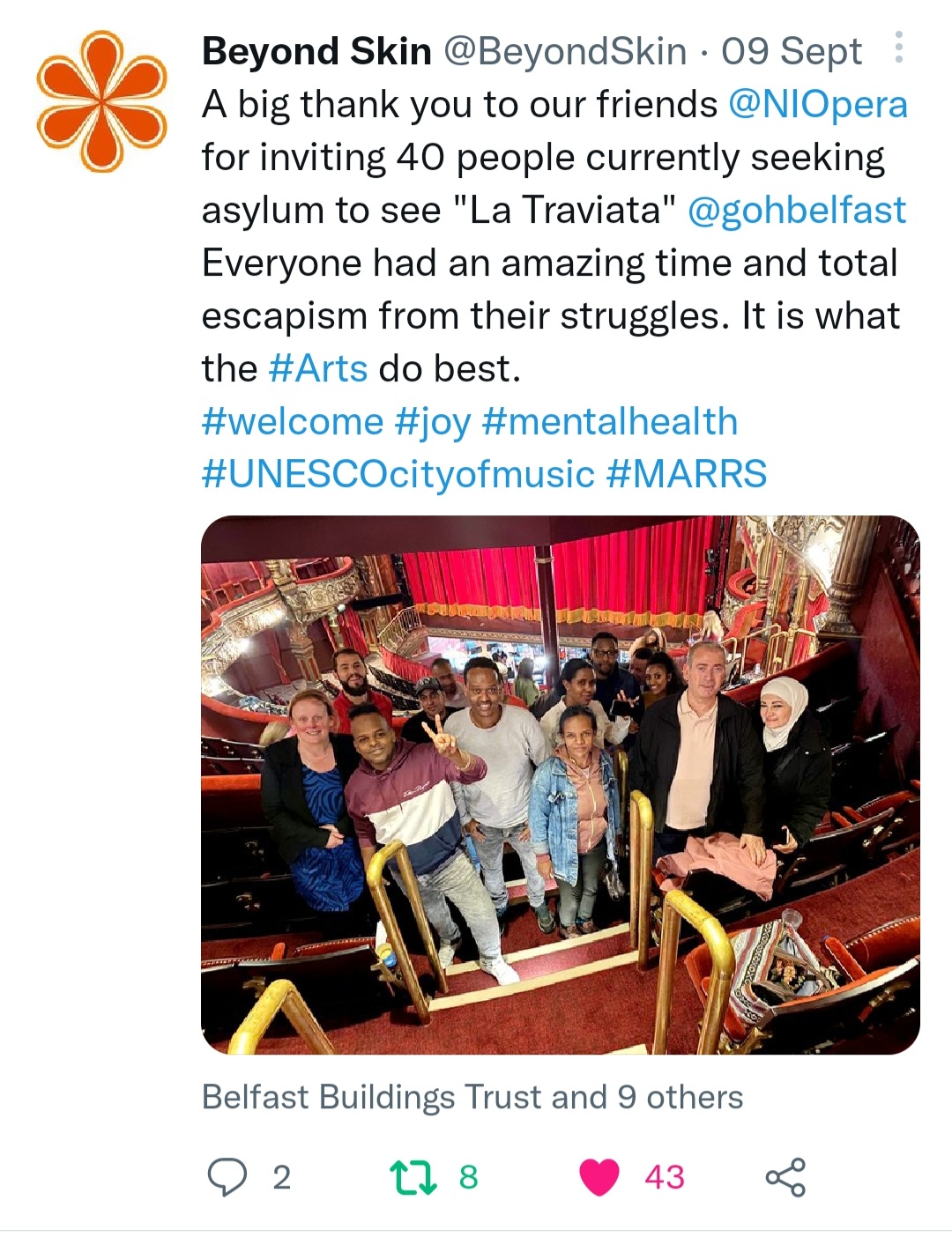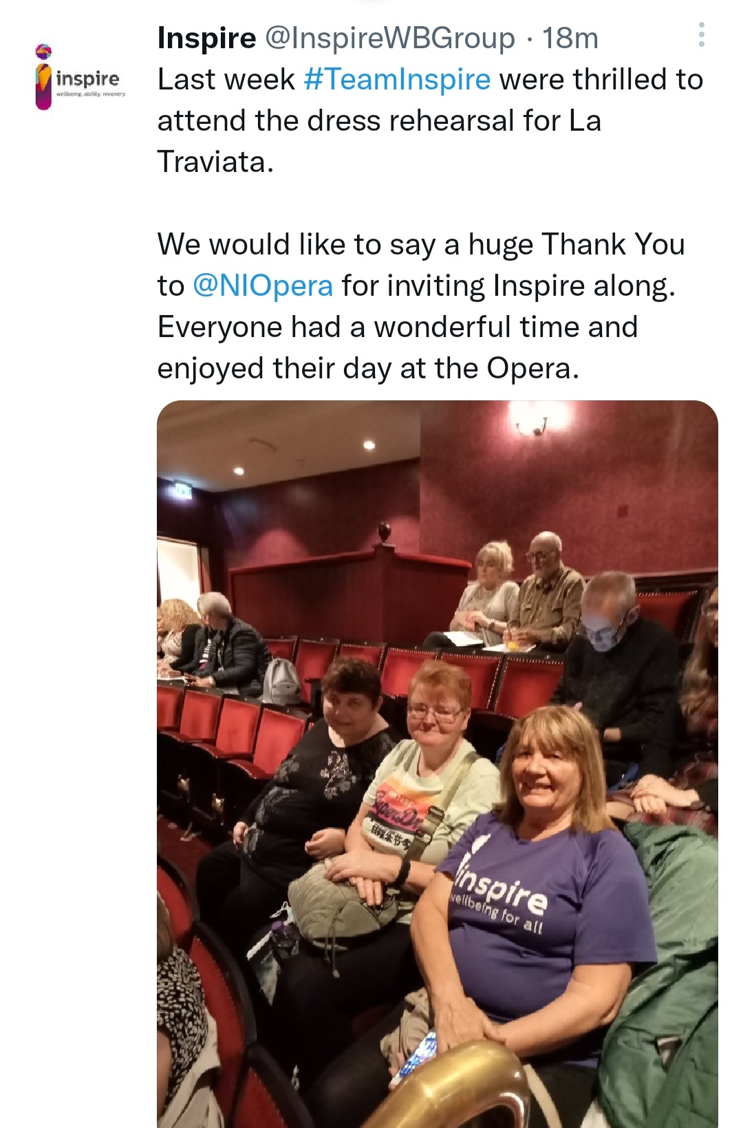 ‘Many of our group attending had never been to the Opera House or an Opera before. Thanks to NI Opera for the arrangements and tickets for the upper circle which were great seats with easy access for some of our group who were older.’
